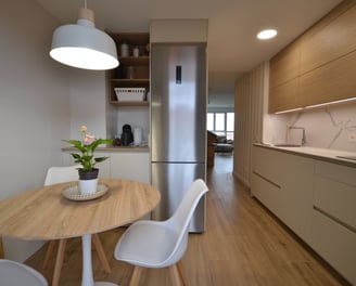 Una cocina serena y funcional, cuidada en cada detalle.