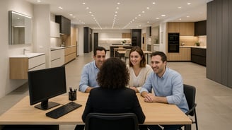 Cuando entras en nuestra exposición, nos cuentas qué necesitas: un baño completo, una cocina nueva o revestimientos para renovar tu hogar. Puedes recorrer libremente la exposición o dejarte guiar por nuestro equipo.